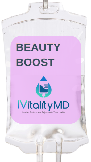 Unlock the secret to more youthful skin, vibrant hair, and resilient nails with our blend of beauty-enhancing vitamins. Vitamin C, biotin, and B complex are the dynamic trio in this pursuit of aesthetic excellence. We elevate this anti-aging drip with a generous infusion of glutathione, your body’s foremost antioxidant. Celebrated in elite circles for delivering the renowned ‘glutathione glow,’ this combination is your key to a radiant, rejuvenated appearance.
